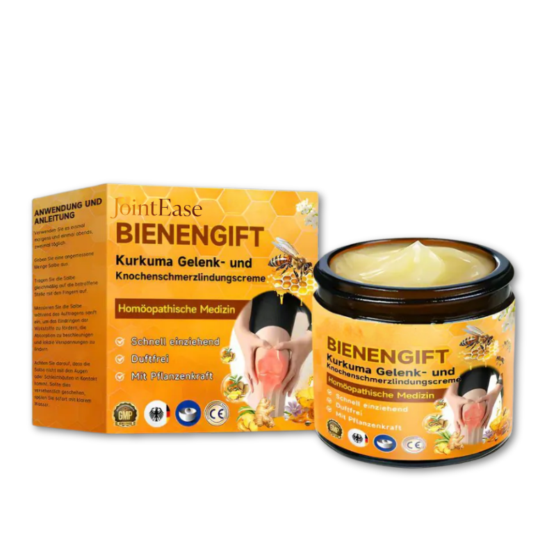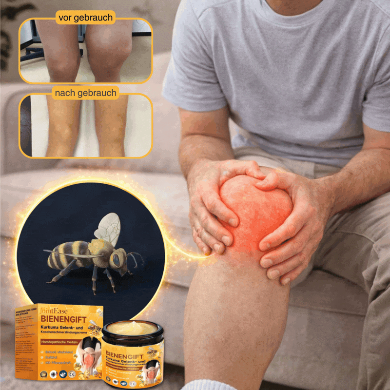 JointEase™ enthält klinisch geprüfte Wirkstoffe wie Bienengift und Kurkuma, die gezielt Entzündungen bekämpfen und Gewebe regenerieren. Über 11.000 zufriedene Kund*innen berichten von spürbarer Linderung – oft schon nach der ersten Anwendung.