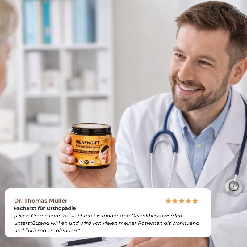 Orthopäden und Naturheilpraktiker setzen auf JointEase™ – wegen seiner gezielten, aber sanften Wirkung direkt am Schmerzpunkt. Die Creme gilt als natürliche Alternative zu Tabletten, Spritzen und Kortison – besonders bei Patient*innen, die eine effektive Lösung ohne Nebenwirkungen suchen.